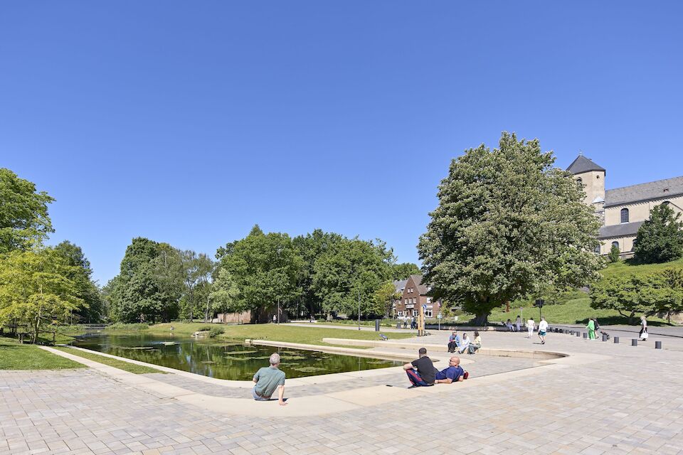 Der frühere Parkplatz am Geroplatz ist einer parkähnlichen Eingangssituation mit viel Grün, einem erweiterten Weiher sowie dem Blick auf die Abtei gewichen. Auf diese Weise bildet er den Übergang zum Geropark. Historische Elemente wie der Verlauf der alten Stadtmauer sind durch die Umgestaltung 2023 sichtbar, neue Spiel- und Sportangebote und eine verbesserte Wegeführung sorgen für mehr Nutzbarkeit und Aufenthaltsqualität für alle Generationen.