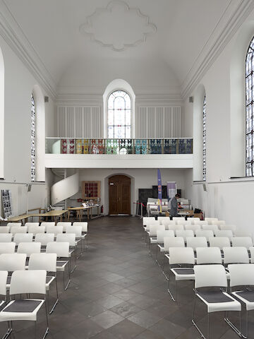 Mit der Wanderausstellung zeigt das Museum der Baukultur NRW von 9. November bis 13. Dezember 2025 in der Berger Kirche in Düsseldorf die Möglichkeiten für neue Nutzungen leer stehender Kirchen – und welchen Blick die beteiligten Menschen darauf haben.